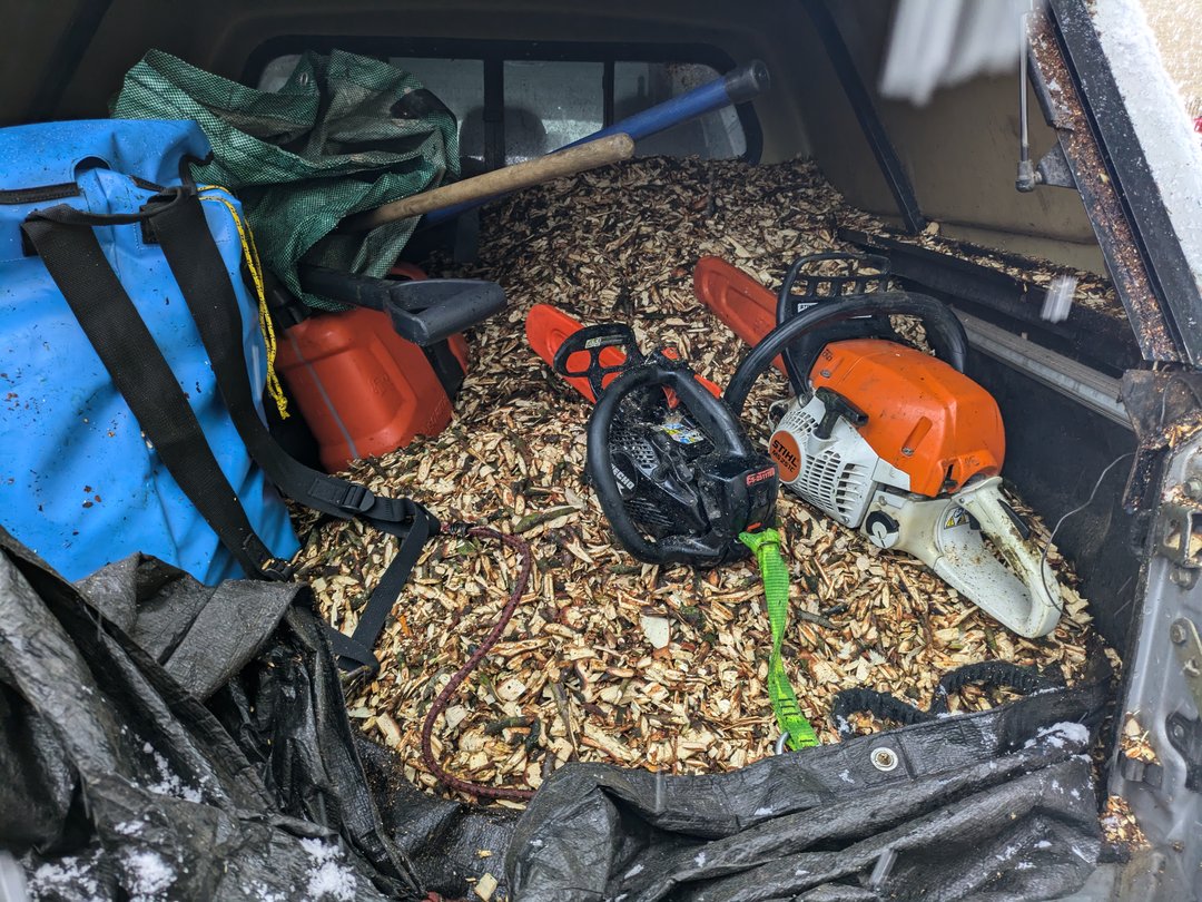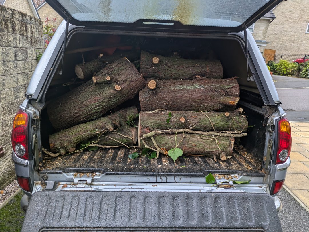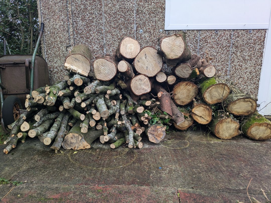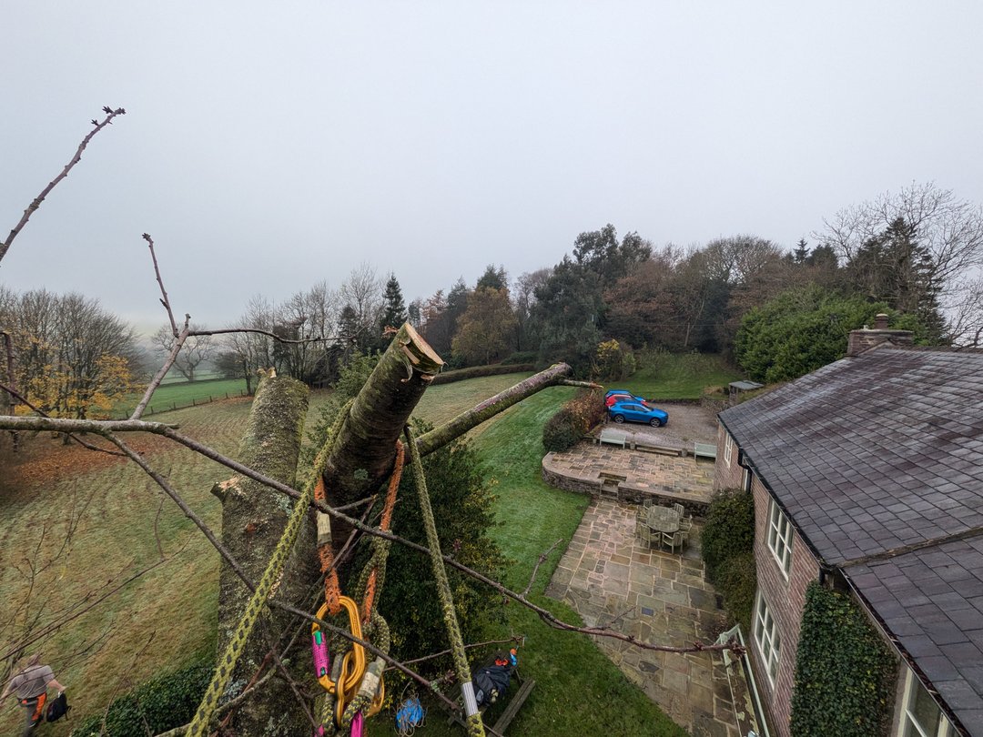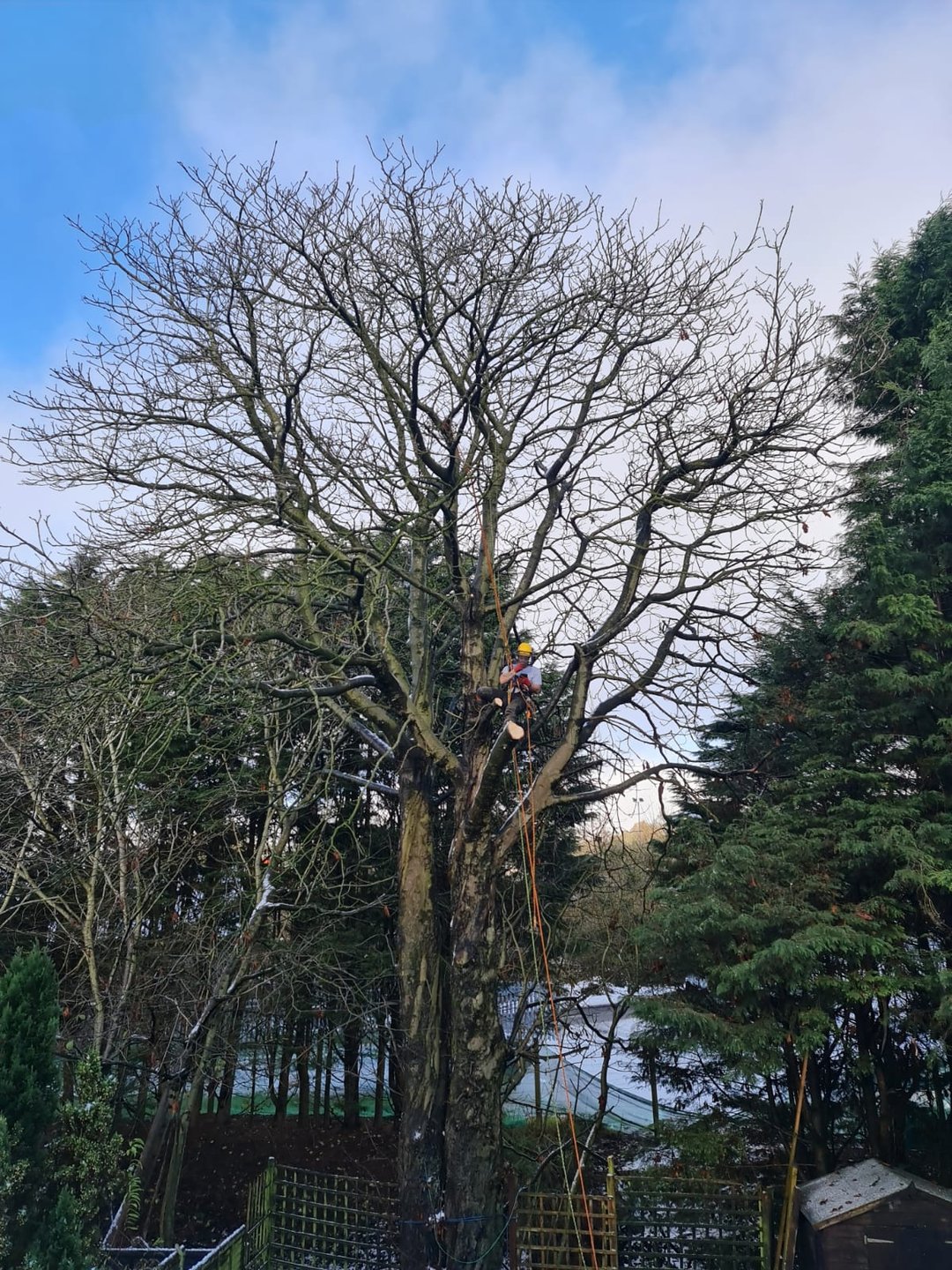 This tree overhanging my clients house and dry stone wall before being safely and carefully dismantled and turned into wood chip and timber for them.…